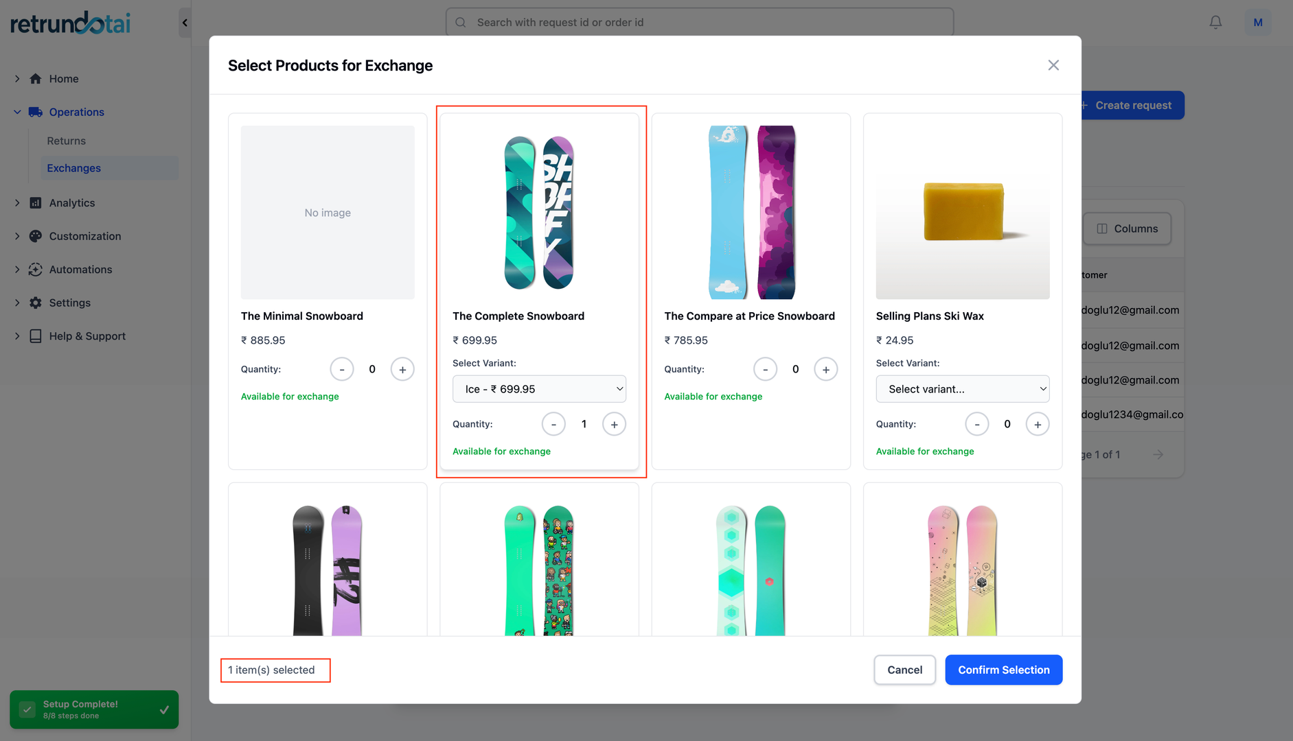 Choose what the customer will receive in exchange for their returned items. You have multiple options to accommodate different exchange scenarios.