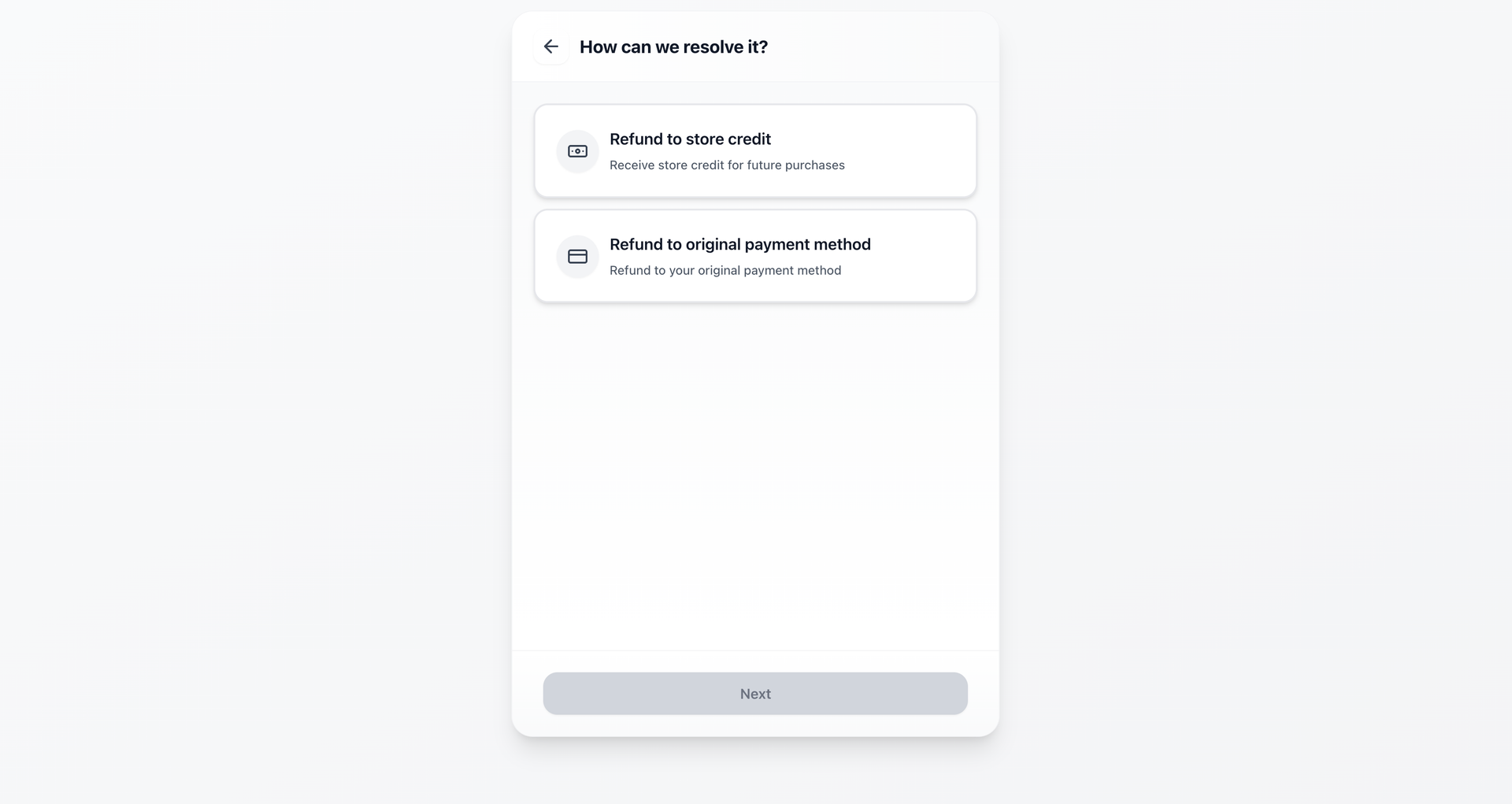 When customers initiate a return and select store credit as their refund method, they see the total refund value including any bonus credit you've configured.