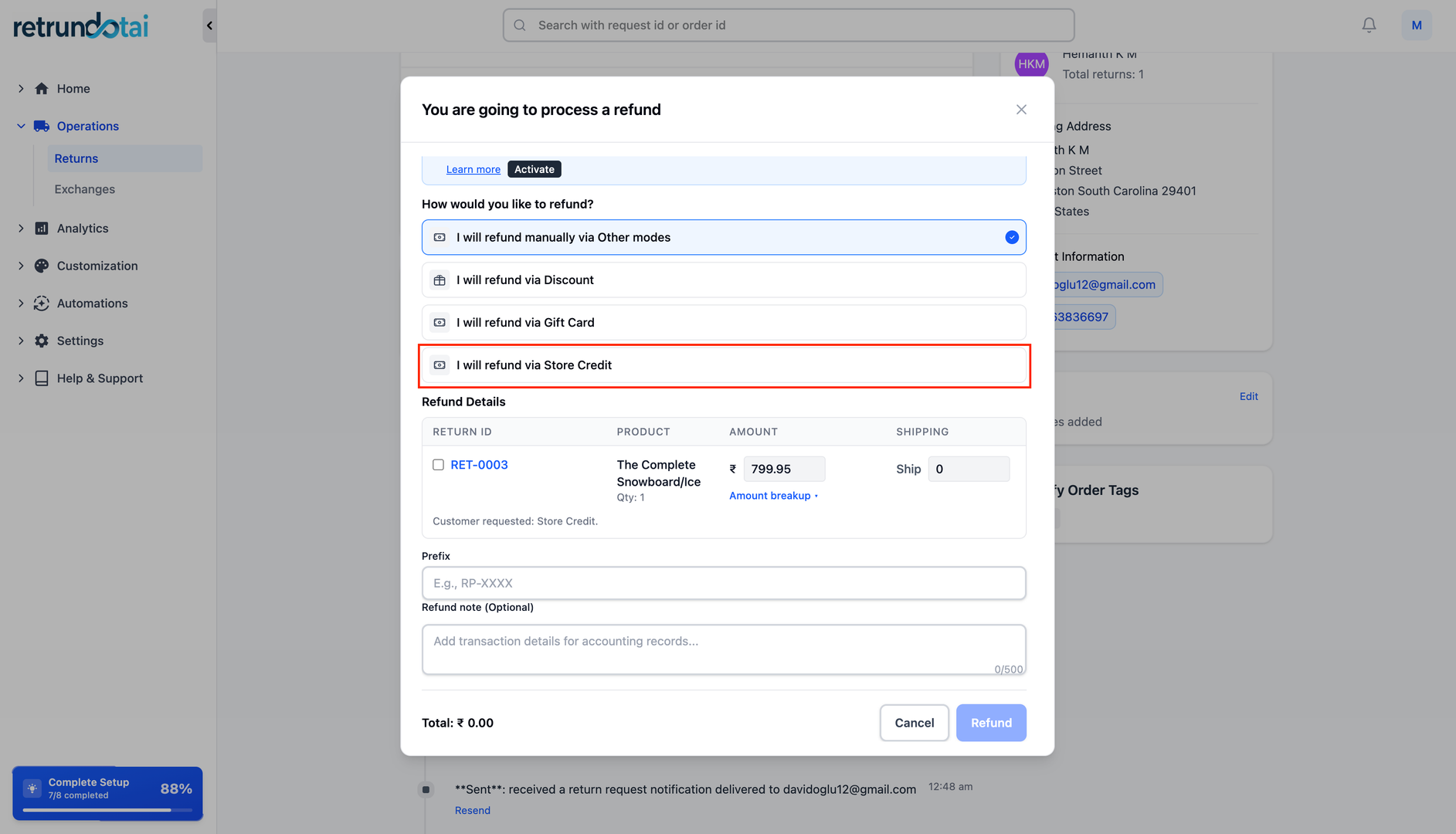 - 1View "Refund to Store Credit" as the resolution of the return request